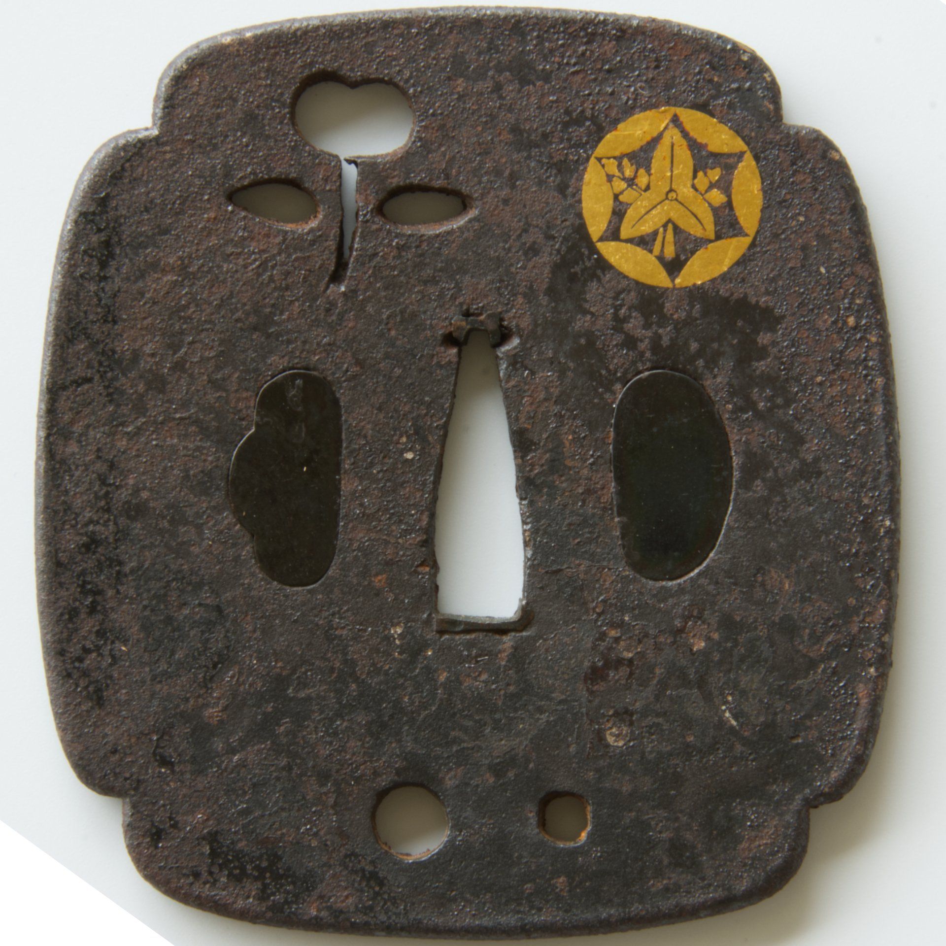 The Tsuba is originated in Japan and was part of the well known collection of Prof. Dr. Karl Adolf Florenz (1865-1939), who teached german in Japan and returned before WW2 to Germany. He was the first european professor for Japanology within Europe in 1914. The Tsuba collection survived the burndown of his house in 1943 after his death and the collection was kept by his family, later split and sold through several auction houses.