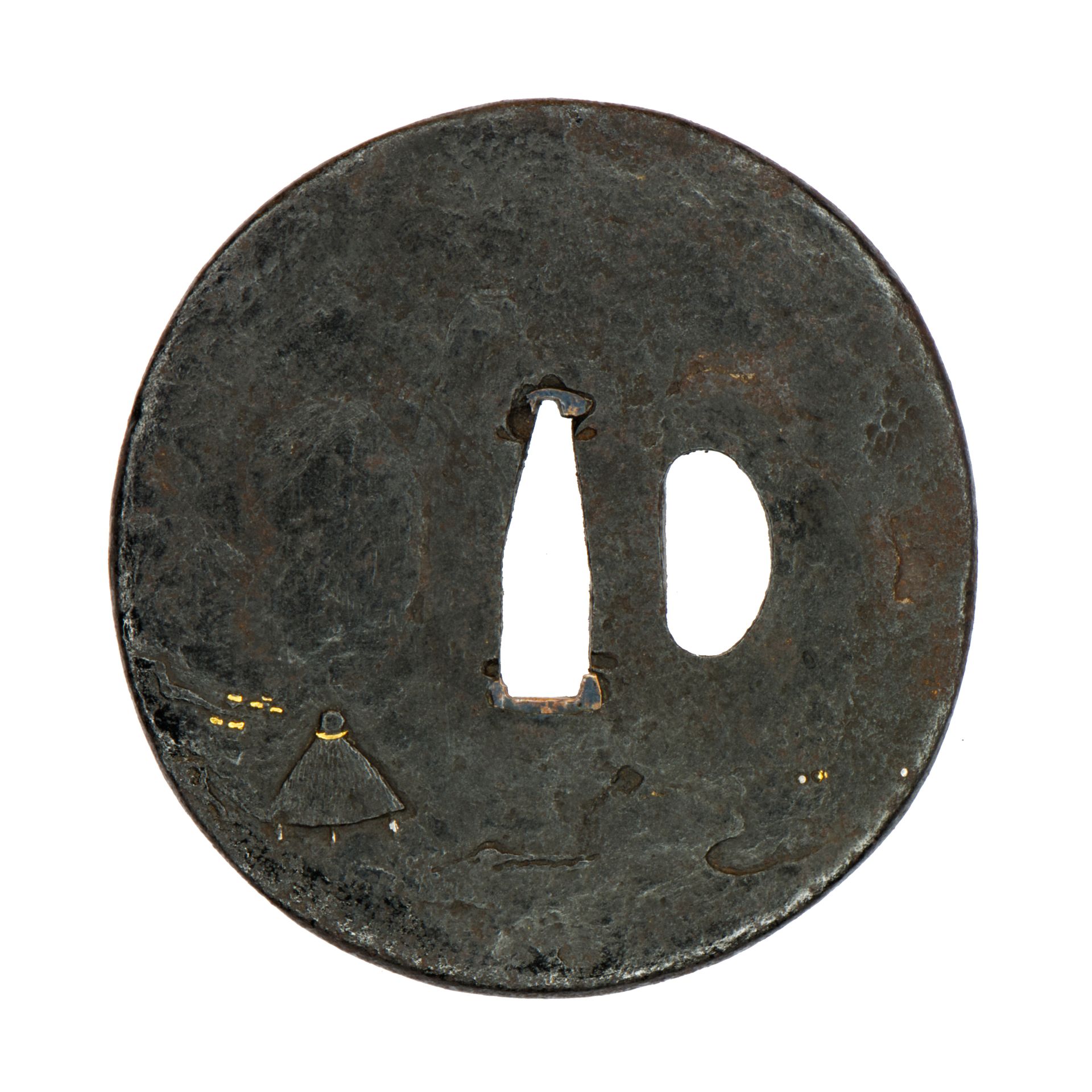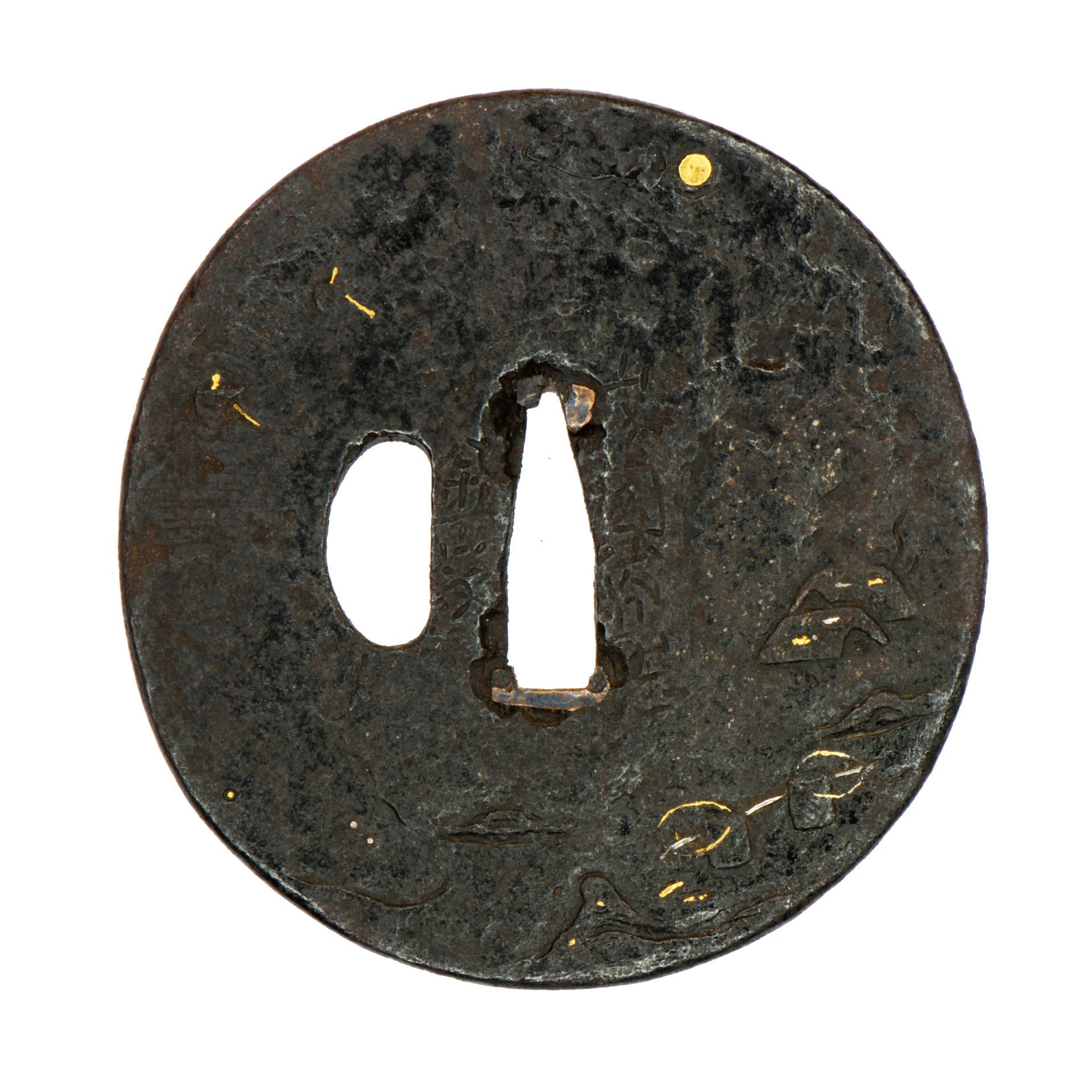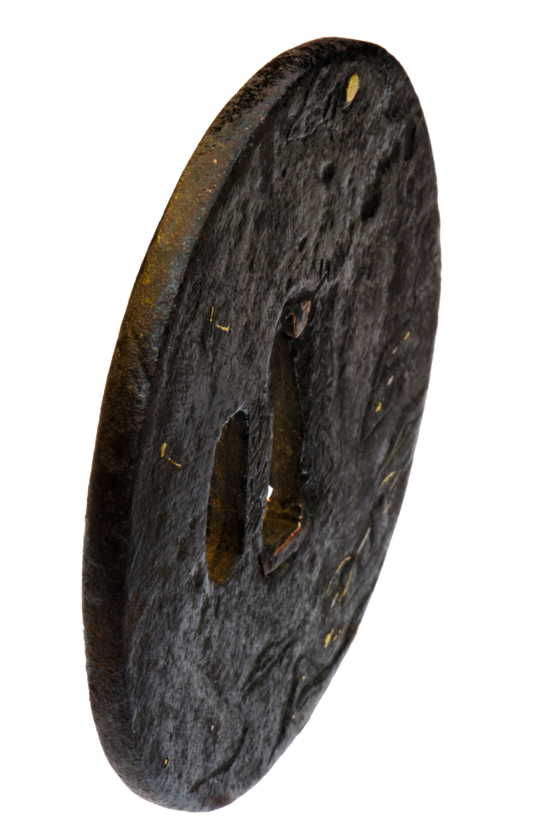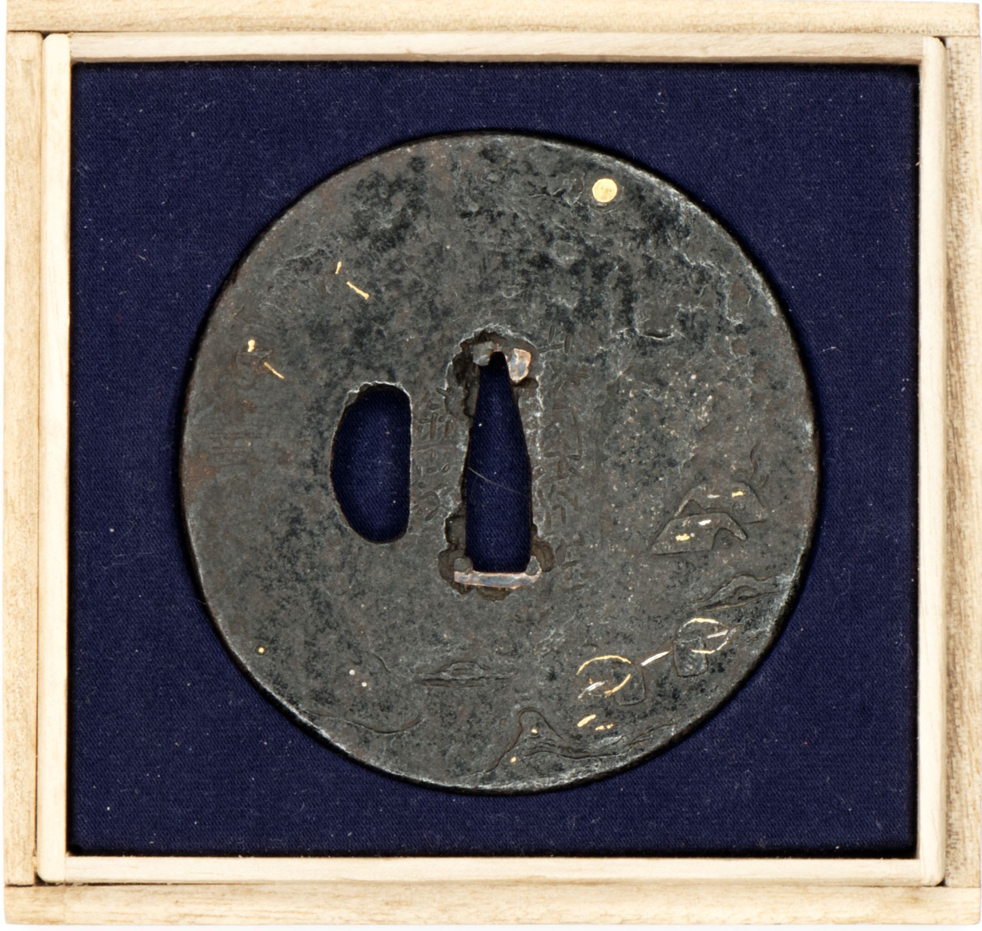 The Tsuba is originated in Japan and was part of the well known collection of Prof. Dr. Karl Adolf Florenz (1865-1939), who teached german in Japan and returned before WW2 to Germany. He was the first european professor for Japanology within Europe in 1914. The Tsuba collection survived the burndown of his house in 1943 after his death and the collection was kept by his family, later split and sold through several auction houses.