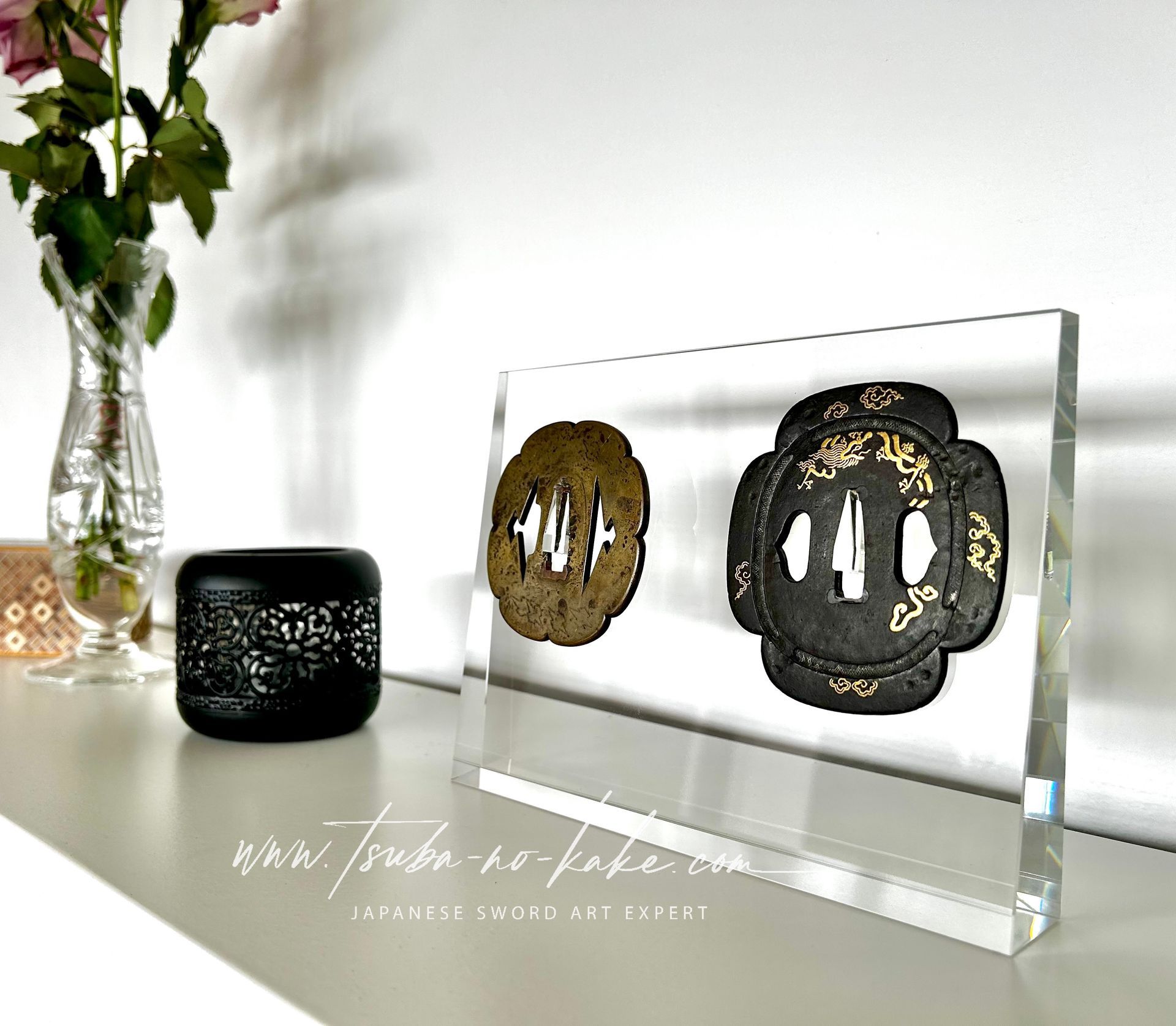 Two triangular pins are attached to the glass surface to ensure your Tsuba will hold in place.