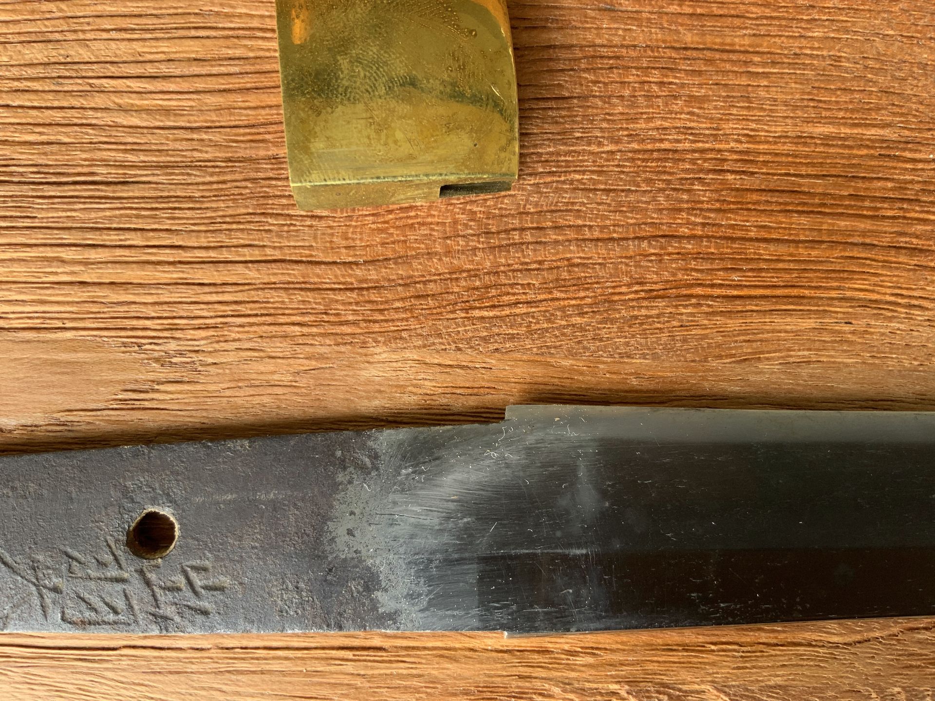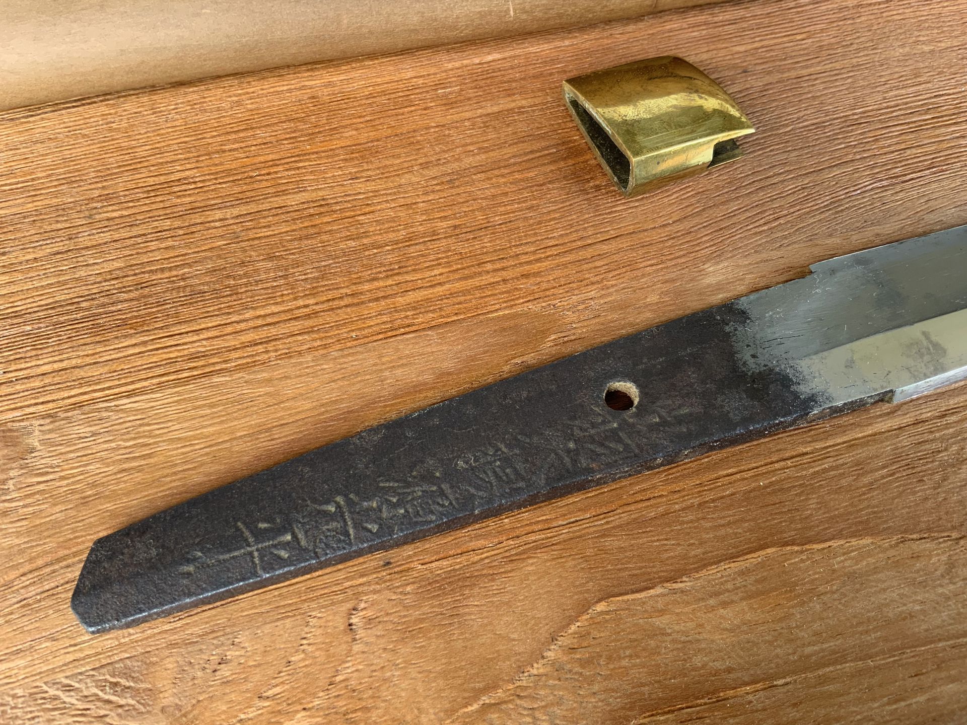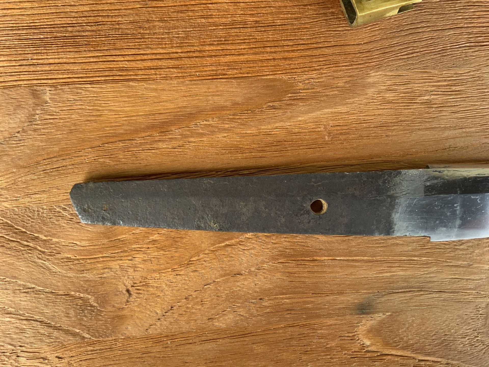 The sword dates from the Shinto period from the 1650-1730 years. The Hamon can be seen, it is in old polish. Keian era 1648-52. Private sale. No guarantee, warranty or return. - Blade No.2 Wakizashi - Dewa daijo Minamoto Mitsuhira Estimated as Shintou (Literally "New Swords"), The Swords Made in early to Mid Edo Period, Around Mid 1600S - Early 1700S. Hamon is visible. In old polish, there some small stains and kizu (scratches) on the blade but i consider thesis as minor damage as its age. Simple Brass Habaki and Authentic Shirasaya Fits Perfectly. Condition: There are some Damages by Age. Please view all photos thoroughly. Probably: Keian era (1648-52) Dimensions: Nagasa (Langth): 55.0 cm / 21.65 Inches Sori (warpage): 0.6 cm / 0.23 Inches Nakago (grip) Longness: 14 cm region of Origin: Japan Provence: Last Owner From Ibaraki Prefecture